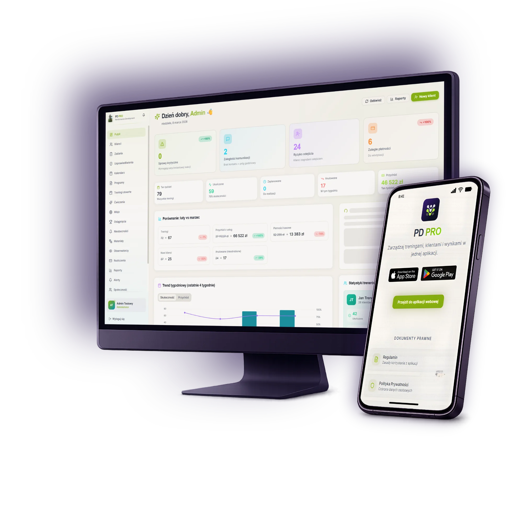 Trenuj, planuj i rozliczaj bez chaosu. Grafik, płatności i kontakt z klientami zawsze pod ręką. Pobierz aplikację i działaj szybciej od dziś.